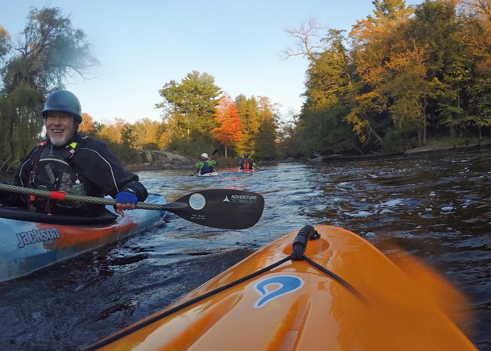 For more years than anyone can remember there’s been an organized Tuesday evening paddle on the Red River near Gresham, Wis., from early spring deep into autumn. I’ve seen anywhere from four to 17 paddlers of all ability levels join in. The great thing about the Red, compared to many other whitewater rivers, is that a dam controls the flow. As a result there’s usually enough water for paddling all season long. With the 2015 season drawing to a close I’m posting a few photos from last night. But who knows? We may get out there again before the ice comes.