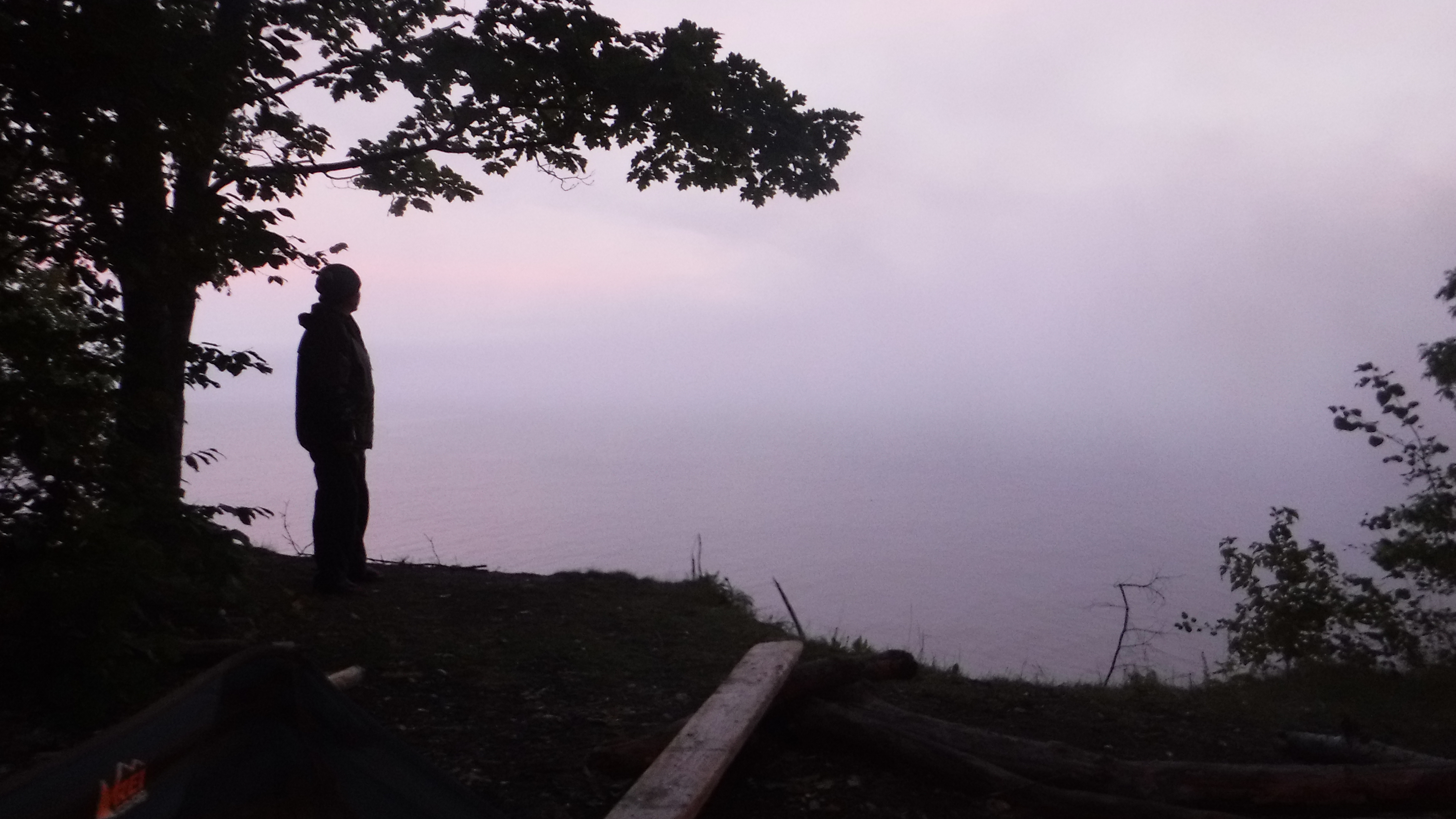 Common MergansersGreg H. along the Oak shorelinePaulaDaren, Will and FredOak Island hikeTuesday evening sunsetJust hanging around Wednesday morningCohen demonstrates how a kayak camping Marine toasts an English muffin. With Kristin and Fred.Kristin and Cohen prepare for a hike 007 style with bear spray.Wednesday’s sunsetThursday morning. Loading kayaks and suiting up for the paddle back to Red Cliff.