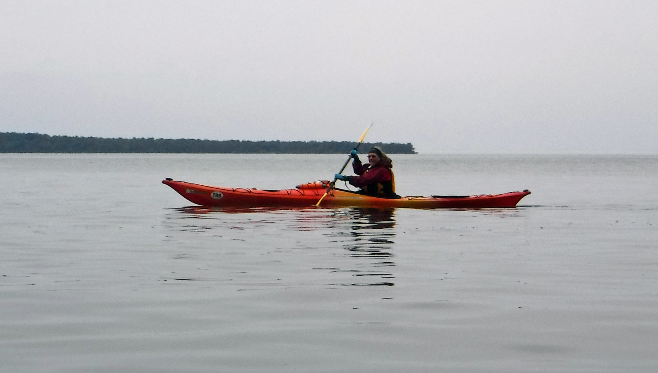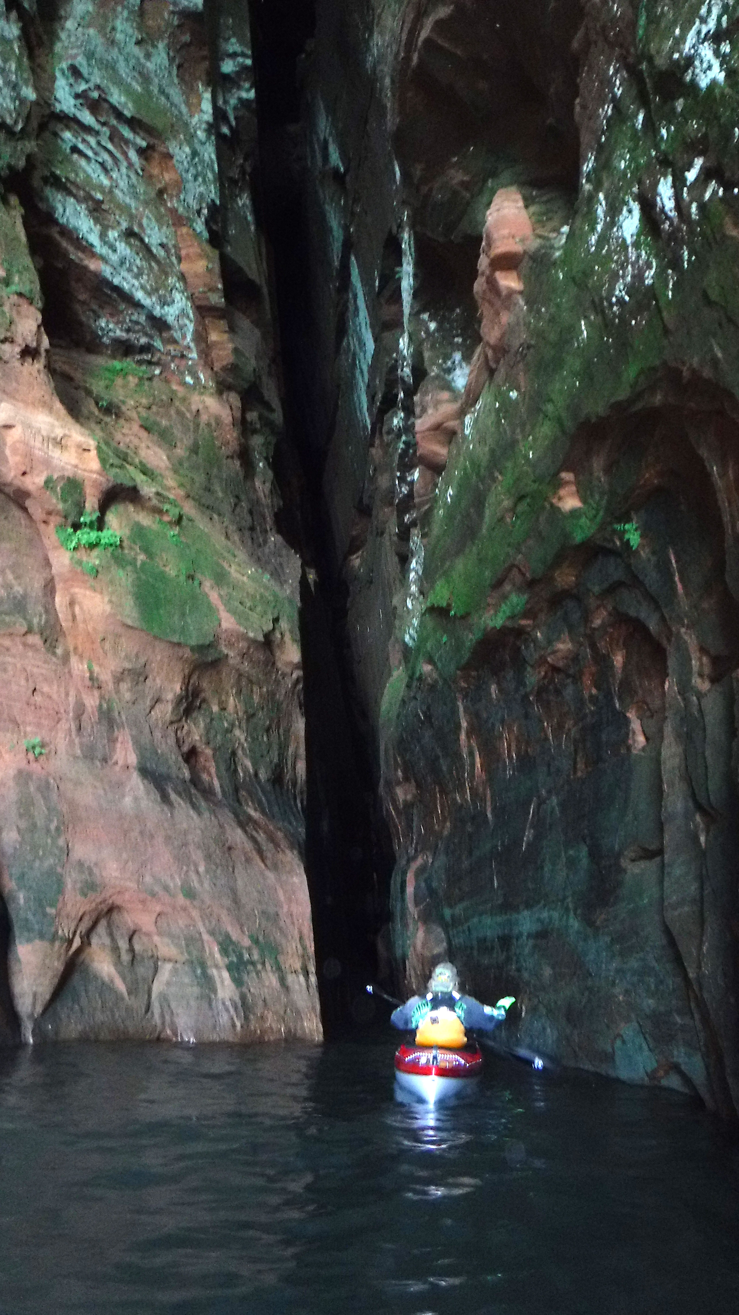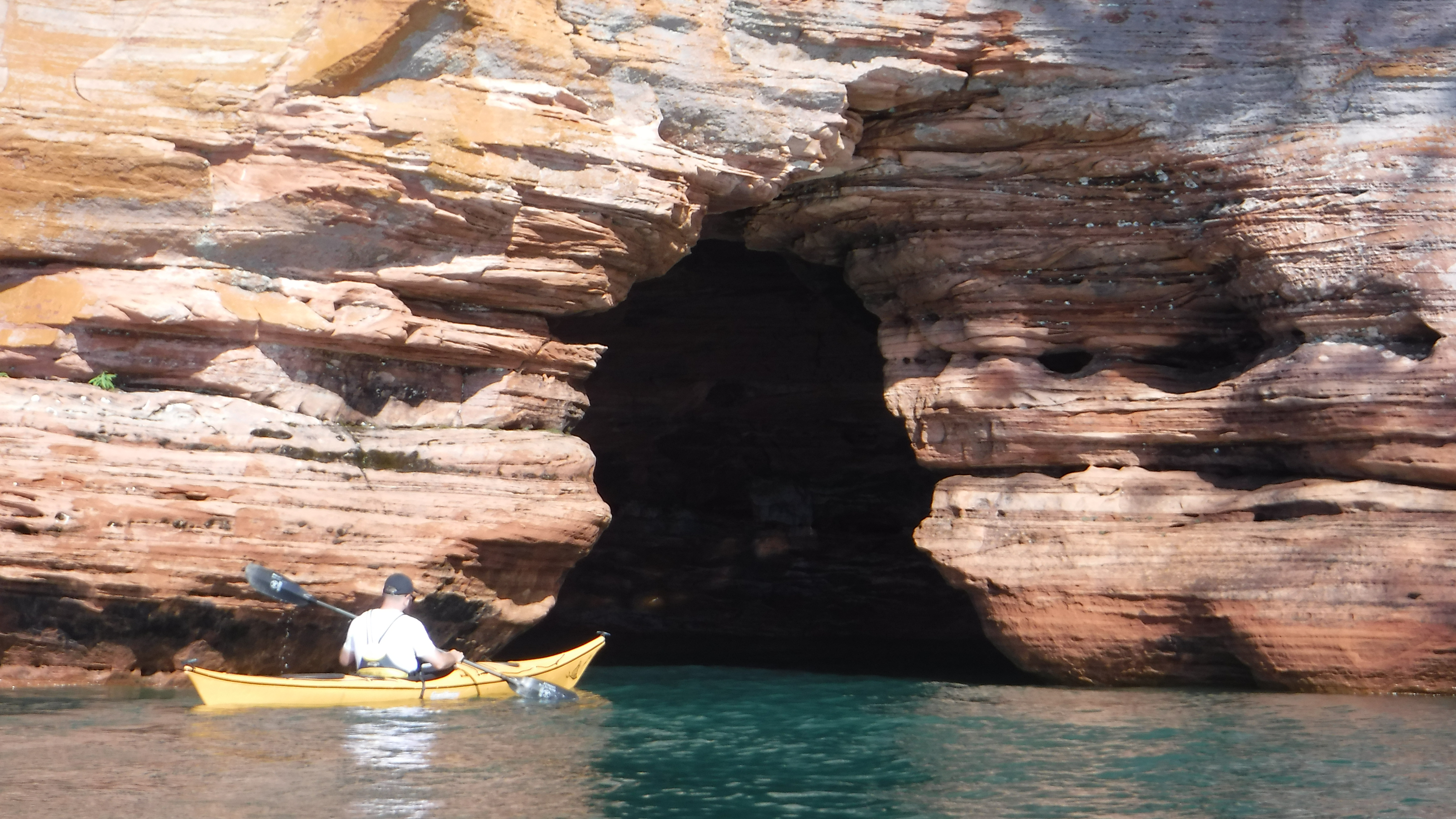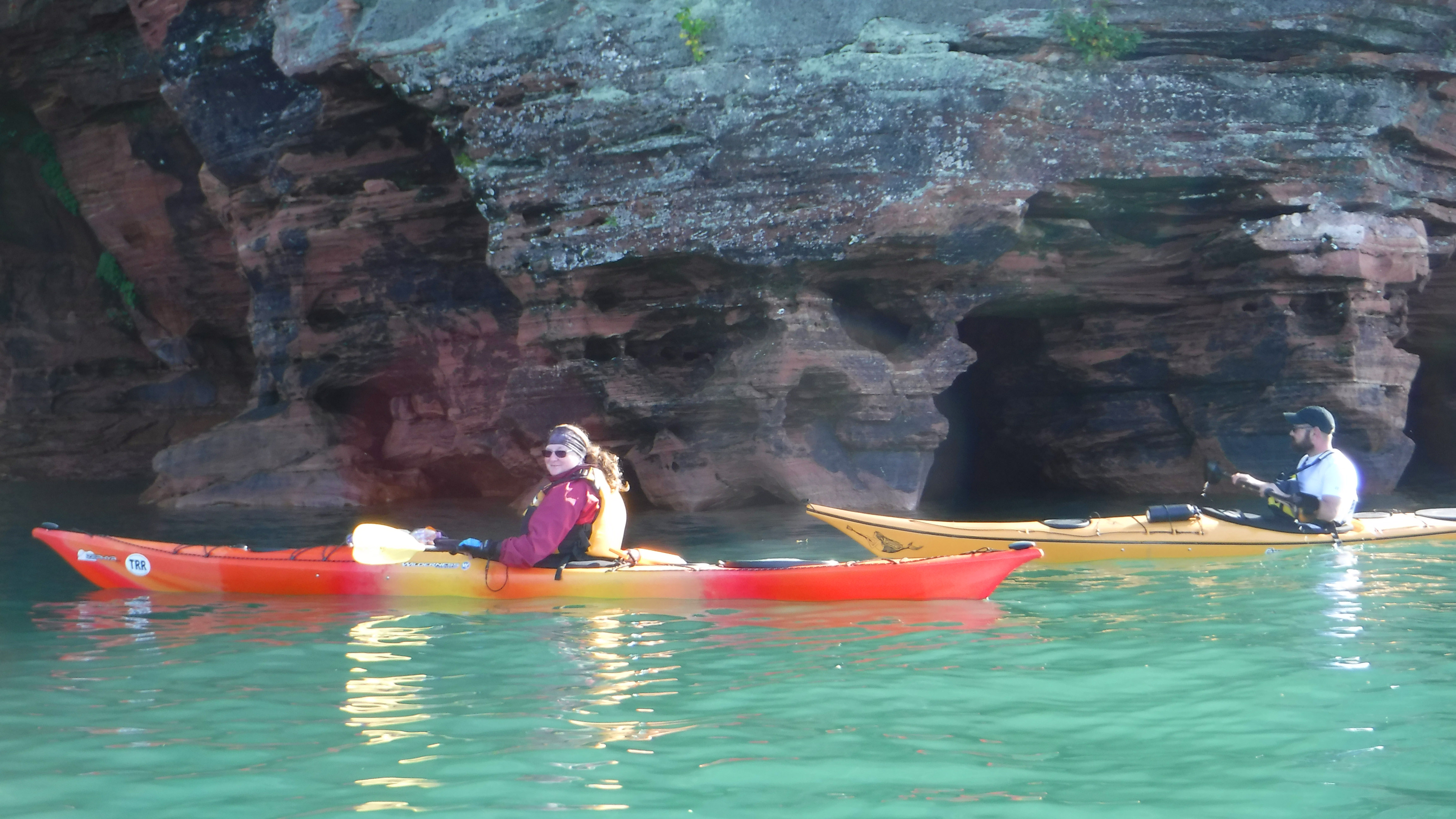 The whole group, ready to paddle back to Red Cliff Thursday morning. Photo by Connie Bell.Along the mainland shoreline, on our way back to Red CliffChristyUnloading at the Red Cliff marinaFor eight of us, there was time for one more paddle to the mainland sea caves before heading home.How could we NOT paddle Lake Superior on a gorgeous September day like this?Greg H. checks out “The Crack” along the mainland sea caves.Fred ventures into “The Crack”Me in my happy place. Photo by LT.Michael enters the “Keyhole”Will poses from inside the “Keyhole”Paula and Michael in front of “Skull Rock”One of several bald eagles that graced us each dayMy attempt at a selfie